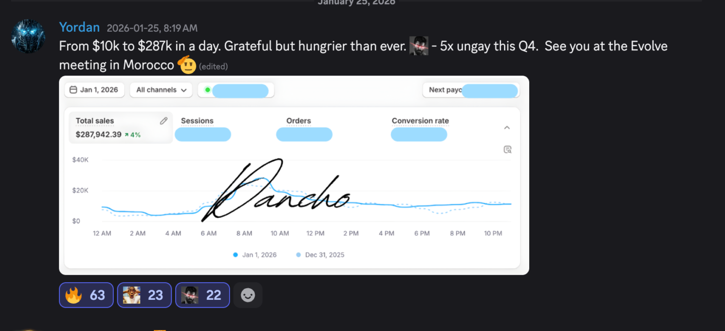 This program works if you execute. We have 34+ people who hit 100K days using this exact strategy. But if you don't execute, that's on you. We can't guarantee results if you don't take action. The guarantee is: Follow the strategy, execute relentlessly, and you'll get results. But you have to do the work.