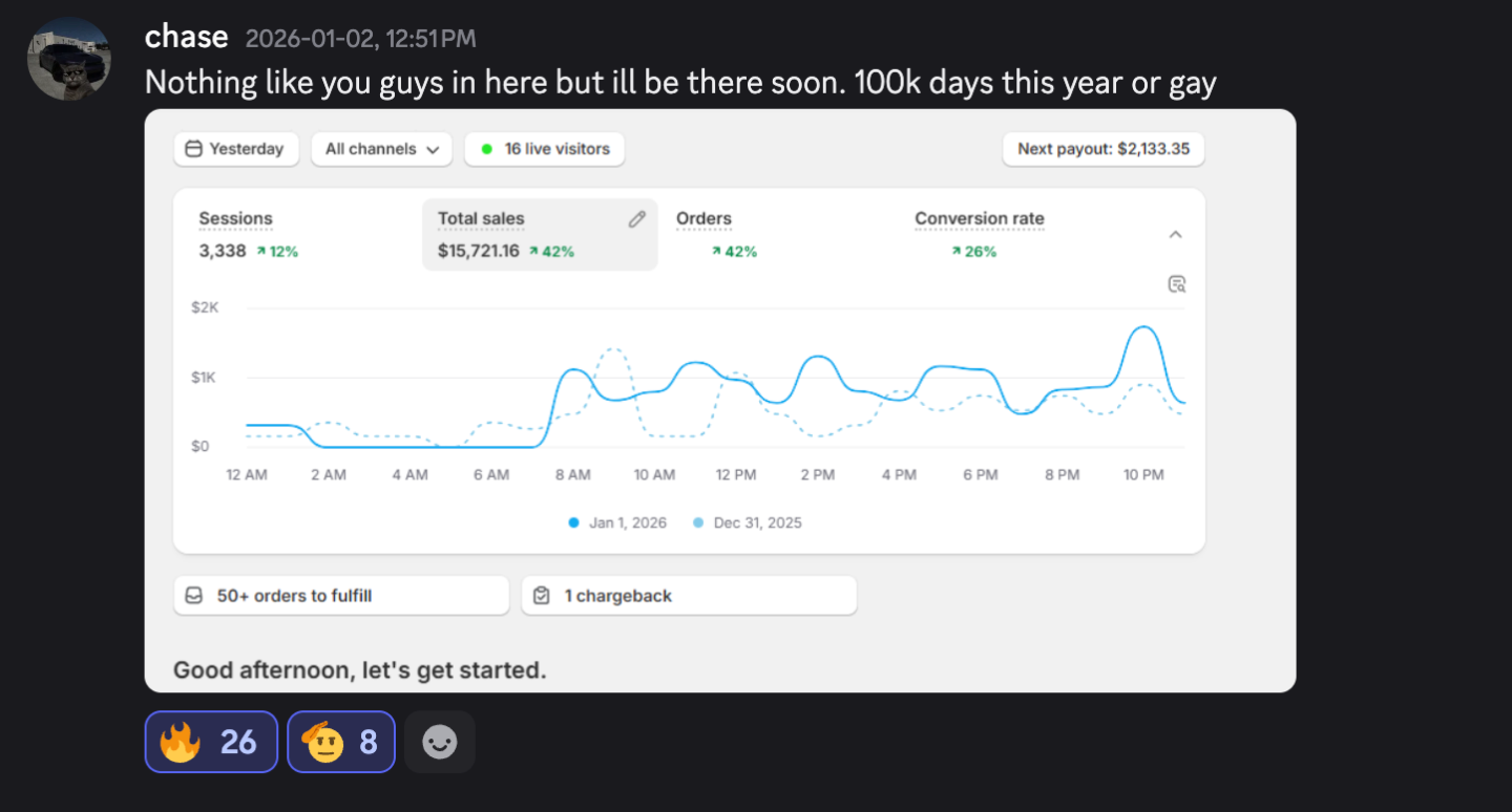 You're qualified if: (1) You want to scale to $100K/day or $1M+/month, (2) You believe in our strategy, (3) You're willing to execute relentlessly, and (4) You don't need hand-holding. You don't need to already be at $100K/day; you just need the hunger to get there.